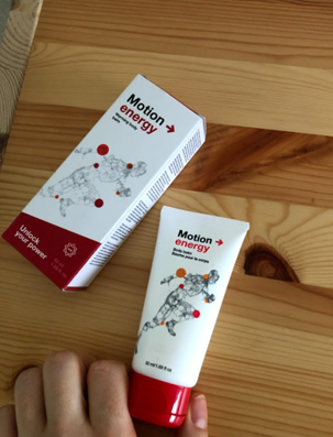 Mi ha dato un tubetto di Motion Energy , un gel innovativo creato da alcuni scienziati tedeschi. Vale la pena ricordare che questo prodotto non si trova in farmacia poiché sarebbe un concorrente preoccupante per prodotti già sul mercato e più costosi. Ecco perché si può ordinarlo solo online. Spero che le cose, in questo senso, cambino. Ma, in fondo, fare acquisti su internet non è la cosa peggiore al mondo, soprattutto quando ti fanno lo sconto del 50%.
